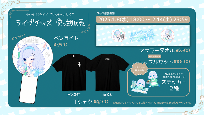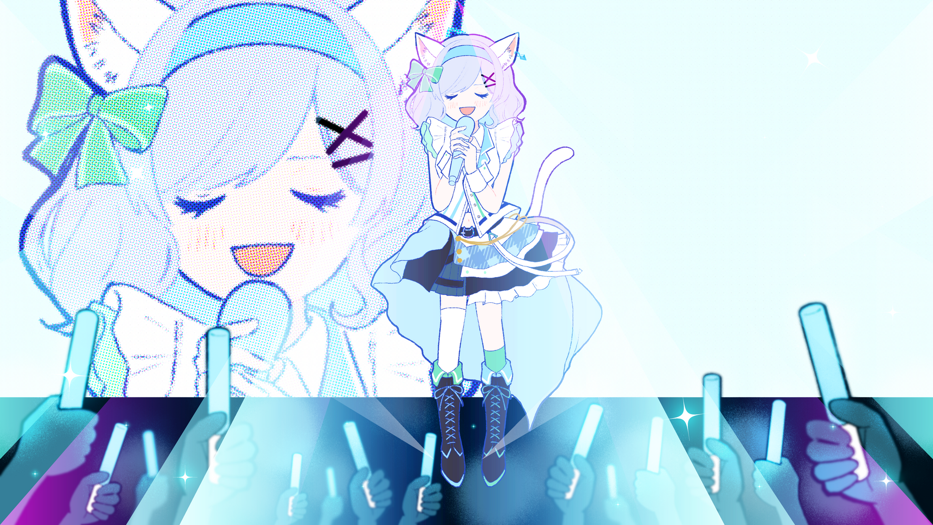 ほぼ毎日配信しながら、イベント企画やグッズの制作、各種モデル・オリソン・MVチェック、各種コラボの監修、収録、撮影、デザインなどなどに対応し、今回のライブもスタジオ選定から歌や振り付けの練習、配信素材制作、タイムテーブル作成、このサイトの制作…書き出したらキリがありませんが、専業じゃなく猫神業(?)をしながらすべて一人で行っているので、実はけっこう大変だったりします。